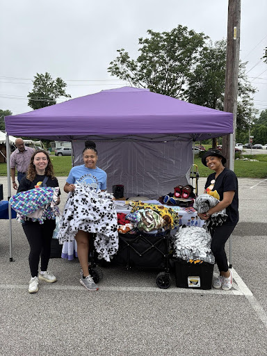 Kerengende distributed children’s books, educational materials, 45 handmade baby blankets from our campers and volunteers, and Clorox wipes provided by United Way of Greater St. Louis—helping little ones get a strong start and reminding families they are surrounded by care.